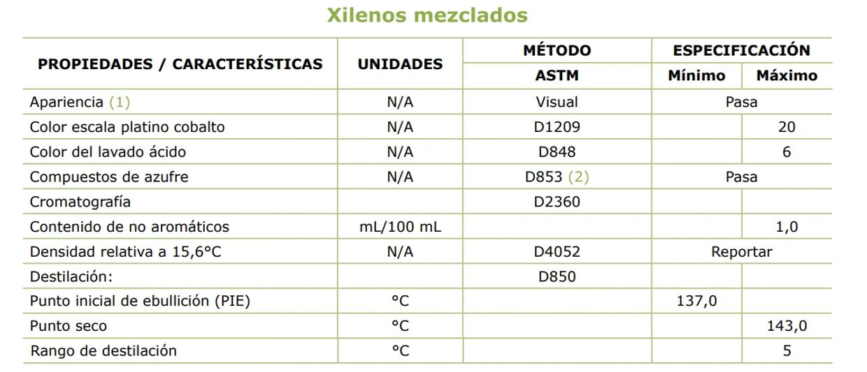 Los xilenos mezclados se producen por destilación de la fracción de aromáticos (BTX) obtenida en el proceso de reformado catalítico de las naftas del petróleo. Son líquidos volátiles, miscibles en alcohol, éter y otros disolventes orgánicos comunes, y muy poco solubles en agua.