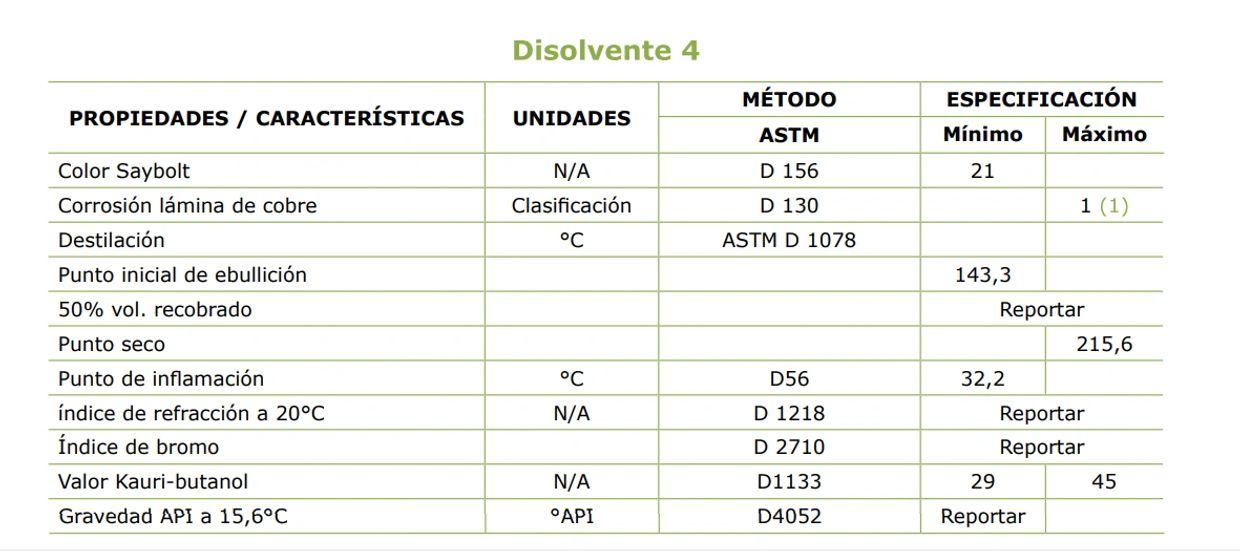 Los disolventes alifáticos son productos de la destilación de naftas se someten a procesos de purificación, neutralización y rectificación de sus límites de destilación. Estos productos son incoloros, de olor agradable y con poder solvente, por lo cual tienen variados usos en la industria.